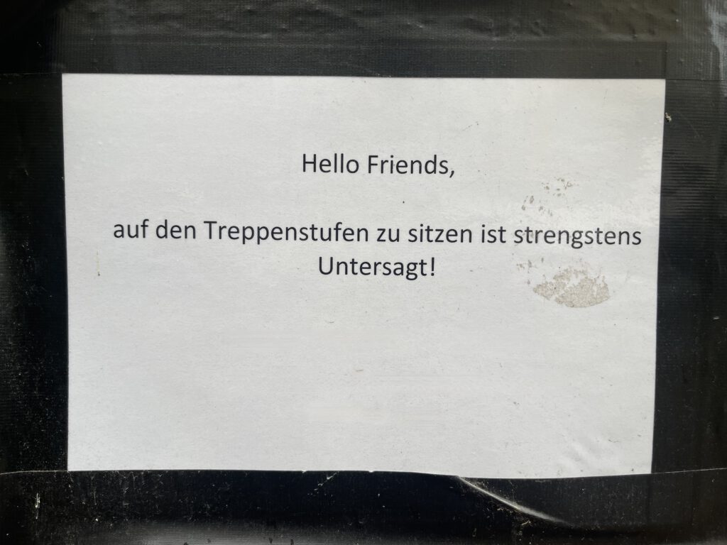 Bisher war Deutschland dafür bekannt, dass alles verboten war, was nicht ausdrücklich erlaubt ist. Das ändert sich gerade. So deute ich zumindest obiges Schild. Und auch die Ansprache ändert sich. Früher „Sehr geehrte Damen und Herren“, heute „Hello Friends“. Bin gespannt, wie es weiter geht.