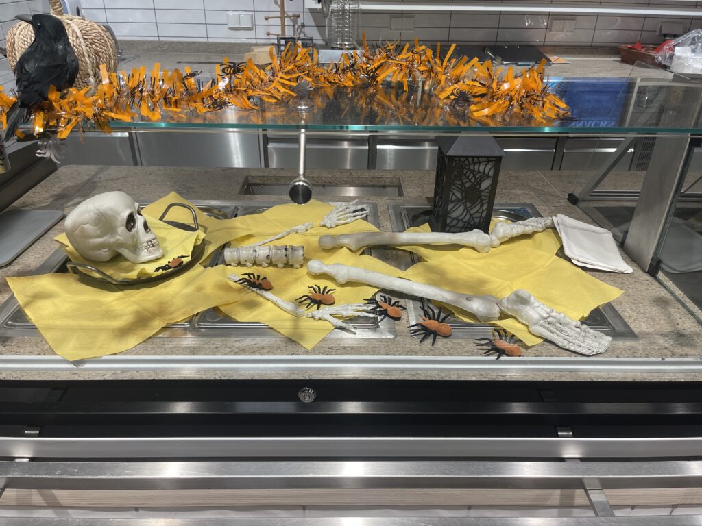 Was früher „Kanonen statt Butter“ war, ist heute „Leiche statt Lende“. Ist natürlich alles nur Spaß, das ist klar. Nur, wer kann immer nur Spaß vertragen? Ob solche Installationen jetzt kriegstüchtig machen, ist auch fraglich. Selbst wenn sie kaum jemand bewusst wahrnimmt. Die Leute werden zugeschissen mit Irrsinn, das geht auf keine Leichenhaut. Am Unterbewusstsein der so Betäubten dürften Totenköpfe und Skelette selbst am kalten Buffett vom Supermarkt aber nicht vorbeigehen.