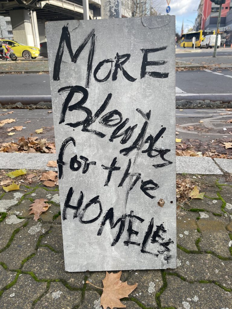 Der Berliner Senat rechnet bis 2030 mit über 100.000 Wohnungs- und Obdachlosen in der Stadt. So gesehen ist es nur folgerichtig, dass sie eine Lobby haben. Ebenso, dass diese Forderungen für ihr Klientel stellt. – Die eine Lobby fordert mehr Impfungen, die andere mehr Blowjobs. – Dass nun ausgerechnet mehr Oralsex gefordert wird, verstehe ich auch als Gegenbewegung zum Zeitgeist.