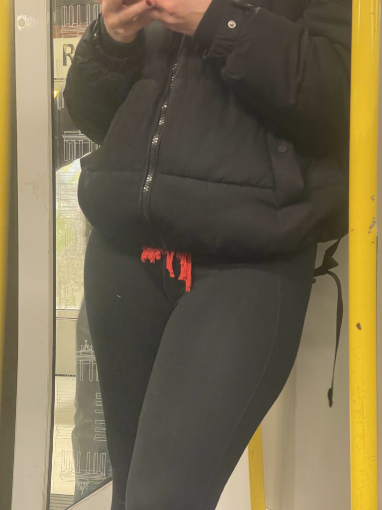 Was will mir die junge Frau mit ihrer mit roten Fransen drapierten Vagina sagen? Dass sie ihre Tage hat und somit nicht verfügbar ist? Aber das weiß ich doch schon längst! Alle Frauen, die ihre Vagina öffentlich zur Schau stellen, sind nicht verfügbar. So wie bei der Post: „Heute jedoch nicht“.