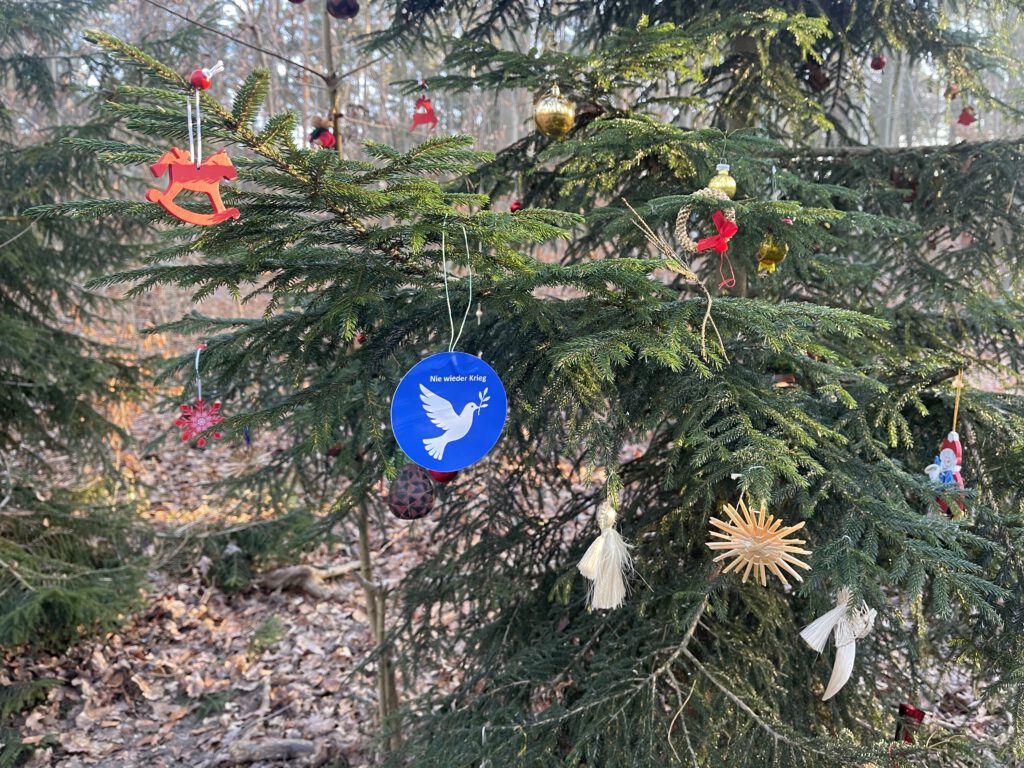Berlin schönster Weihnachtsbaum steht im Grunewald. Genauer Standort wird nicht verraten. Ich bin mir nicht sicher, ob man schon wieder für Frieden sein darf. In der Natur offensichtlich schon. Im woken Friedrichshain hätte man den blauen Baumschmuck vermutlich schon entfernt.