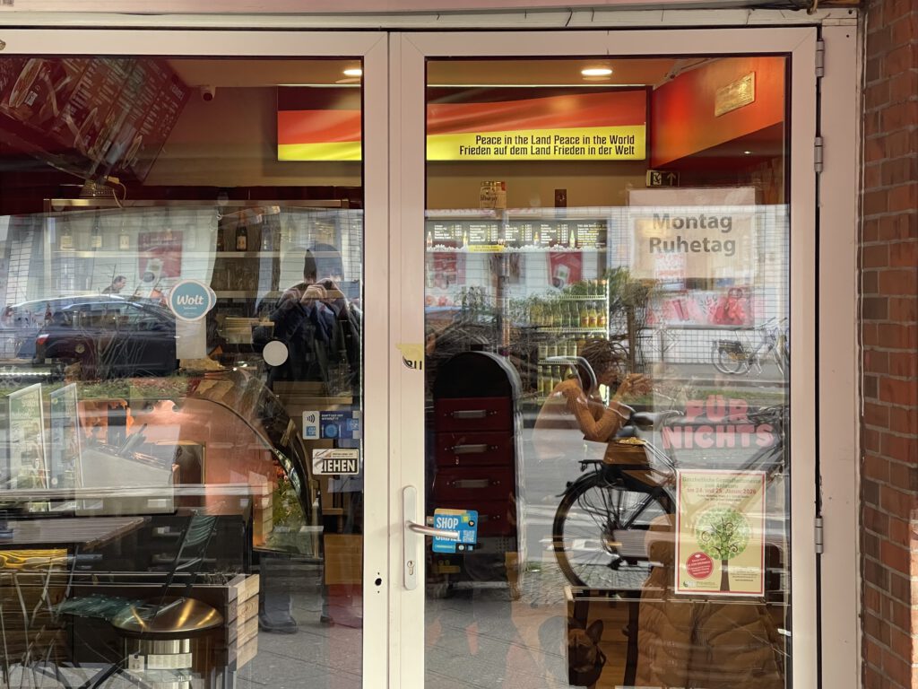 Beim Hissen von Schwarz-Rot-Gold muss man aufpassen hierzulande. Hat man die falsche Gesinnung, kann das den Staatsschutz auf den Plan rufen so wie neulich in West-Deutschland, wobei Nationalstolz schonmal als falsche Gesinnung durchgehen kann. Wer auch nur etwas in der Welt herumgekommen ist, weiß, dass dies weltweit ein einmaliges Phänomen ist – ein deutscher Sonderweg sozusagen. Da die Leute von heute ohne Ende reisen, sollten sie es eigentlich wissen. Zumindest geht es mir so, der viel Zeit in Bulgarien verbringt und auch schonmal in Amerika war. Dem Deutschen müssen es seine türkischen Mitbürger vormachen, wie es geht. So deute ich zumindest obige Deutschlandfahne in einem türkischen Imbiss in Neukölln. Oder ist es schon Kreuzberg? Es spielt keine Rolle. Wichtig ist dagegen noch, was auf der Fahne steht. Einmal steht da „Frieden auf dem Land“, was nicht falsch, aber auch nicht wirklich richtig ist, denn es ist nicht der ländliche Raum gemeint, sondern das ganze Land. Besser wäre also „Frieden im Land“, und kein Bürger- bzw. Bruderkrieg im Land. Für „Frieden in der Welt“ sind plötzlich auch die, die gestern noch die, die genau dies forderten, als „gefallene Engel aus der Hölle“ bezeichnet haben. Eine sehr seltsame Entwicklung, auf die ich in einem anderen Beitrag noch gesondert eingehen werde. Zurück zum türkischen Imbiss: Man stelle sich obige Deutschlandfahne in einem deutschen Imbiss vor. Keine Sorge, es wird nicht passieren, denn der Betreiber wäre automatisch rechtsradikal und natürlich Nazi. Vermutlich würde sogleich der Staatsschutz auftauchen, allerdings nicht als Kunde. Als Kunde höchstens in seiner Freizeit, die er aber immer weniger hat.